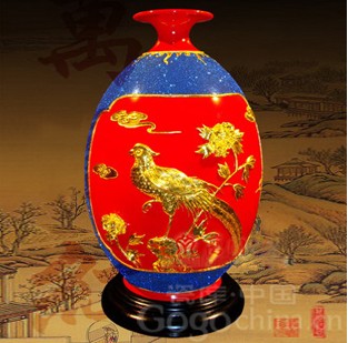 圖:鳳凰來(lái)儀漆線雕高檔橄欖瓶