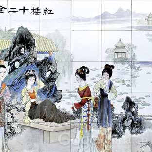 另一展廳展出近50件陶瓷作品,包括許多瓷版畫(huà)。陶瓷作品《桃花源里》由工藝美術(shù)師劉偉所創(chuàng)作,一般陶瓷只有一面景,而此作品采用“通景”,正反兩面均有布景,旋轉(zhuǎn)陶瓷看到的畫(huà)面,如同打開(kāi)的卷軸。畫(huà)面是在高溫煅燒而產(chǎn)生的顏色釉“流變”,色彩亮麗。