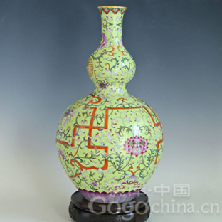 圖:清乾隆萬壽連延粉(洋)彩葫蘆瓶