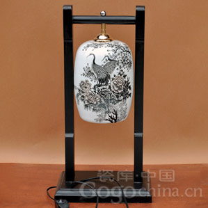 圖:景德鎮(zhèn)水墨畫丹頂鶴薄胎陶瓷燈具