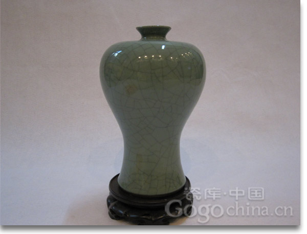 圖:龍泉哥窯青瓷開(kāi)片束腰小口瓶