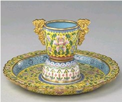 金屬胎琺瑯器是以金屬制胎,用石英、長石為主要釉料燒煉成的五彩繽紛的琺瑯制品。由于金屬胎琺瑯器制造工藝復(fù)雜,釉料配制和燒造技術(shù)難度大,生產(chǎn)成本高,所以這種珍貴的琺瑯制品開始很長時期主要在宮廷中中制作,供皇帝及皇室享用。也有少量琺瑯作為貴重禮物由皇帝恩賜給王公大臣,民間則很少流傳。