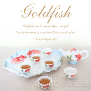 圖1:商務(wù)禮品·琺瑯瓷藍(lán)彩富貴紅鯉魚高檔禮品功夫茶具