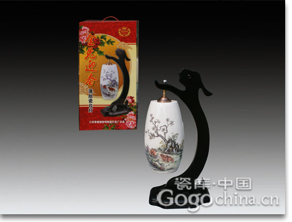 圖:景德鎮(zhèn)貼花金兔迎春陶瓷臺燈