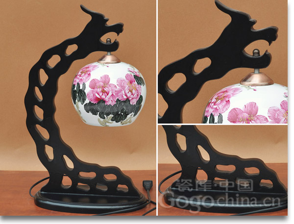 圖:陶瓷工藝臺(tái)燈·景德鎮(zhèn)手繪粉紅玫瑰薄胎陶瓷臺(tái)燈