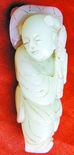 4和田青白玉執(zhí)荷童子佩(清末民初)