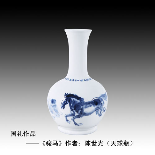 “2011年1月18日至21日,胡錦濤主席對(duì)美國(guó)進(jìn)行了國(guó)事訪問(wèn)。此訪系2011年我國(guó)外交開(kāi)篇之作,國(guó)際社會(huì)對(duì)此廣泛關(guān)注。由中國(guó)海瓷藝術(shù)研究院研制、美術(shù)家創(chuàng)作的海瓷瓶《六駿圖》、《駿馬》、《醉詠紅梅》和《春韻》作為禮品贈(zèng)予美方。瓷瓶設(shè)計(jì)精美、制作精細(xì),為增進(jìn)中美人民的相互了解和友誼起到了積極作用。特此表示衷心感謝!”
