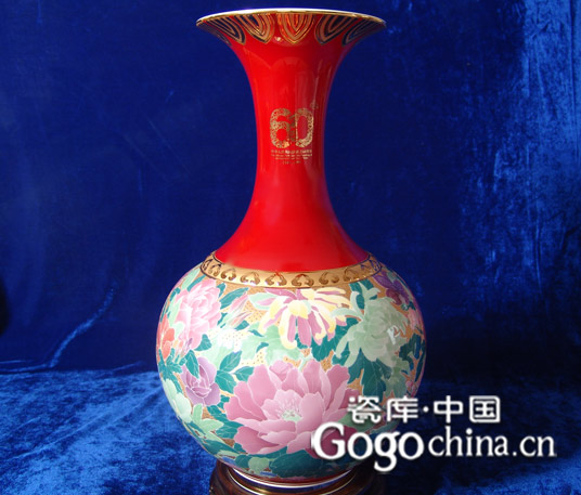 圖:瓷器禮品·慶建國60周年瓷器繁榮昌盛天球瓶