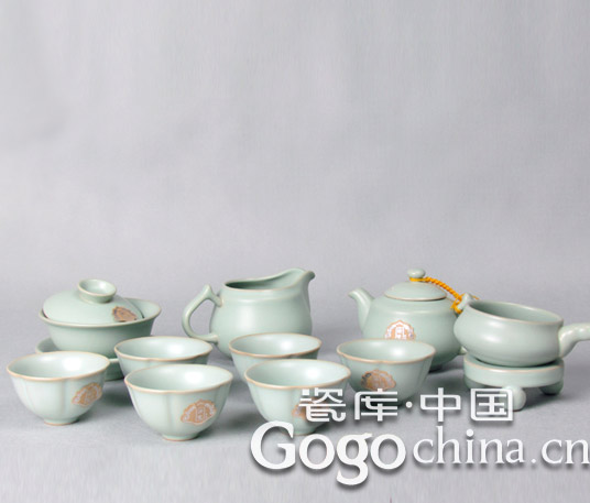 圖:汝瓷開片如意青瓷茶具