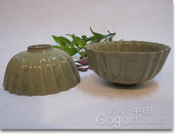 圖:龍泉青瓷米黃釉開片蓮花碗