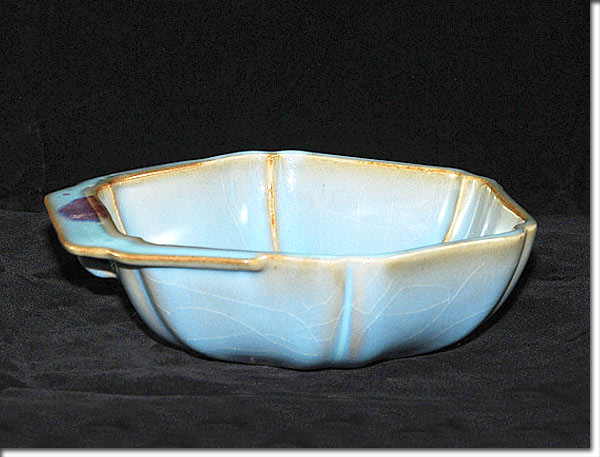 監(jiān)窯官領(lǐng)旨,讓陽翟官窯最拔尖的窯匠趕制。窯工們費(fèi)盡心血,終于燒制出一件精美的筆洗:下面三只如意足、上下沿兒各有一圈鼓釘,洗里不添水,看著總是水汪汪的。