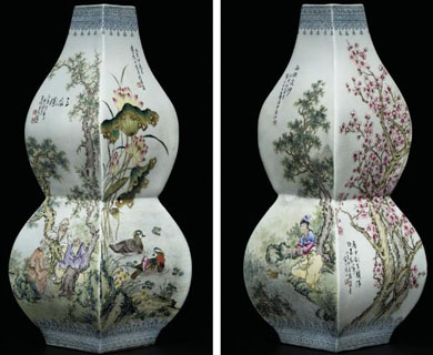 圖:“珠山八友”粉彩葫蘆瓶