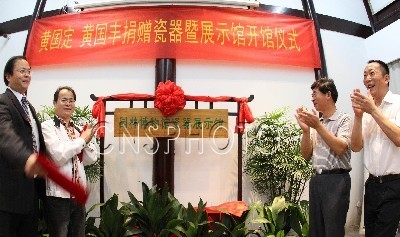 2011年8月18日,由香港收藏家黃國定和黃國豐兄弟捐贈的91件瓷器藏品在江蘇蘇州園林博物館正式對外展出。這批捐贈的瓷器包含瓶、盤、碗、罐、尊、觚、壺、如意、筆筒等多種類型,其中體積最大的為一件粉彩雙龍耳纏枝番蓮紋扁瓶,花紋繁雜細密,高達66.5厘米。 據(jù)悉,黃氏兄弟祖籍廣東寶安,幼年隨父母定居香港。上個世紀90年代初,黃氏兄弟繼承父輩收藏事業(yè),共同創(chuàng)辦了“豐定軒”,至今已有近30年的收藏經驗。
