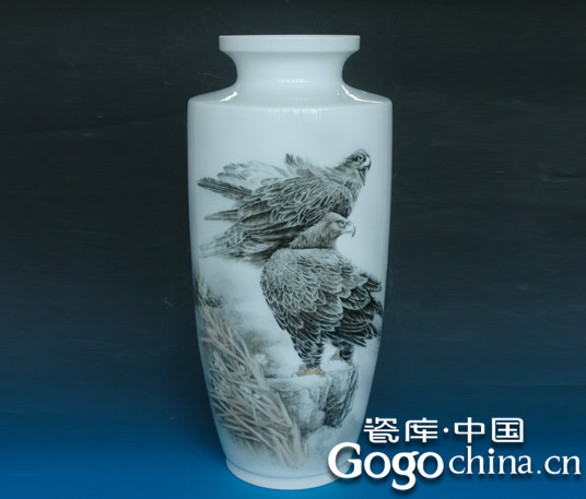 圖:陶瓷藝術(shù)花瓶大師手繪雙鷹圖