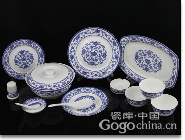 圖:景德鎮(zhèn)骨瓷青花釉中彩纏枝蓮紋餐具
