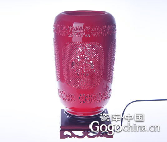 圖:景德鎮(zhèn)紅瓷高檔手工鏤空陶瓷臺燈