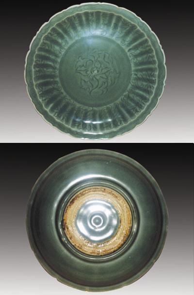 圖:刻花蓮花紋折沿菱花口大盤