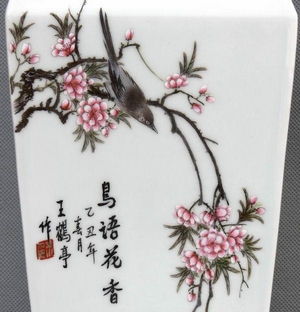 王鶴亭,號(hào)桃源笑山人,安徽黟縣人,1921年12月出生。1934年曾在江西陶瓷局學(xué)藝,拜康達(dá)為師。1958年后進(jìn)景德鎮(zhèn)藝術(shù)瓷廠畫瓷。