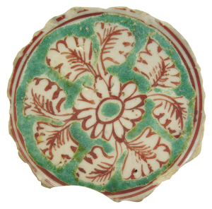 圖2更具有佛教的特點(diǎn),碗心的蓮花是佛教的象征,取其清凈無染之意。佛菩薩的坐處稱蓮座、蓮臺,聚會處稱蓮池。而碗底有一紅彩梵文“吽”字,此字出自“六字大明咒”,或稱“六字真言”,即“嗡嘛呢叭咪吽”,藏傳佛教認(rèn)為,常持誦六字大明咒,可以消除病苦、刑罰、非時(shí)死之恐懼,壽命增加,財(cái)富充盈。所以,在藏區(qū)常?梢钥吹饺藗兪謸u轉(zhuǎn)經(jīng)筒,口誦“六字真言”的景象。