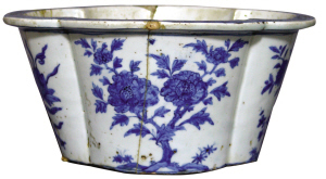 在古代青花瓷繪中,以植物花卉蔬果最為豐富。不僅各種花卉直接作為畫面主題入畫,而且常以花卉作為人物畫、山水畫的背景或配景。由于所繪花卉佳果多有美好寓意,故使青花瓷格外生輝,成為上至官宦、下至百姓所喜聞樂見的紋飾。