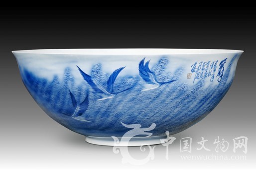 直徑124公分、高49公分、最薄處不足2毫米的薄胎大碗將于9月8日亮相2011山東陶瓷藝術(shù)博覽會(huì)。據(jù)悉,此碗曾刷新了吉尼斯世界紀(jì)錄,成為迄今為止最大的釉下青花薄胎碗,2010年曾受邀在上海世博會(huì)上展示,市場估價(jià)兩千余萬。