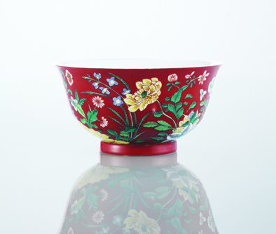 琺瑯彩瓷又稱瓷胎畫琺瑯或琺瑯畫瓷,是專為清代宮廷御用而特制的一種精細彩繪瓷器,創(chuàng)燒于康熙晚期,由造辦處琺瑯作的匠師將銅胎畫琺瑯之技法成功地移植到瓷胎上而創(chuàng)制的新瓷器品種。雍正時期,琺瑯彩瓷的工藝和繪畫達到成熟,乾隆后期由于粉彩的興起而逐漸銷聲匿跡。由于當時產量較少,能夠留傳至今的傳世品極少,據(jù)有關史料記載,原清宮舊藏康、雍、乾三朝琺瑯彩瓷主要集中在乾清宮東端凝殿左右屋內,共有400余件。后來,其中的300多件于1933年古物南遷后離開故宮,1949年被運往臺灣,現(xiàn)藏于臺北故宮博物院,還有40件現(xiàn)收藏于北京故宮博物院。現(xiàn)在收藏琺瑯彩瓷最多的,當屬海峽兩岸的兩個故宮,此外,上海博物館和南京博物院也收藏了少量的琺瑯彩瓷。零散收藏在世界各地博物館和私人藏家手中的琺瑯彩瓷,多是晚清流散出宮或被英法聯(lián)軍從圓明園掠走的。現(xiàn)在出現(xiàn)在市場上流通的琺瑯彩瓷,基本上都是清末流散出宮的,數(shù)量非常少,因此,一件琺瑯彩瓷重復上拍的情況就比較多。