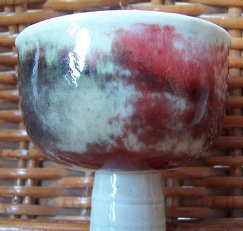 釉里目前發(fā)現(xiàn)的元代釉里紅,大體可以歸出這些特征:胎骨一般比同期青花粗,前期龍紋白胎為多,元末有白胎。器物見明顯的旋削痕和接胎痕。釉層早期的淡青白色或灰白色屬影青釉,透明度高,有玻璃質(zhì)感。元末見卵白釉淺紅油狀青白釉,不見同期大型青花瓷上的透明白釉。呈色不穩(wěn)、淺紅、紅和深紅的夾雜灰色,有不同程度的暈散。大多見于銅紅料邊緣。因燒制溫度過高,大多有燒飛狀況。