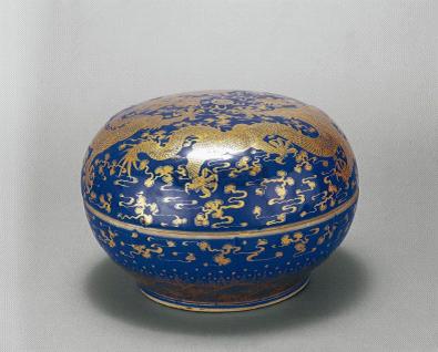 元代創(chuàng)燒成功,色調(diào)深沉,光亮細(xì)膩,釉色滋潤,釉面不流不裂,色調(diào)濃淡均勻,呈色穩(wěn)定。明宣德祭藍(lán)釉因其色澤深沉,明清時(shí)期被用來作祭器的釉色,故稱祭藍(lán),又因常將藍(lán)稱為青,也叫祭青。清代另有以祭藍(lán)釉作地的祭藍(lán)描金、祭藍(lán)地白花等工藝品技術(shù)。
