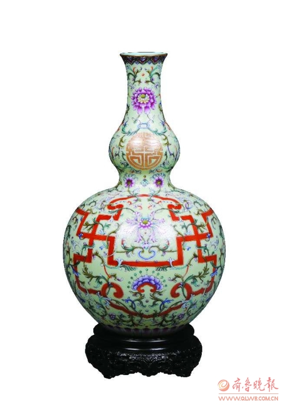 ▲“復(fù)活”的洋彩“萬(wàn)壽連延”大吉葫蘆瓶