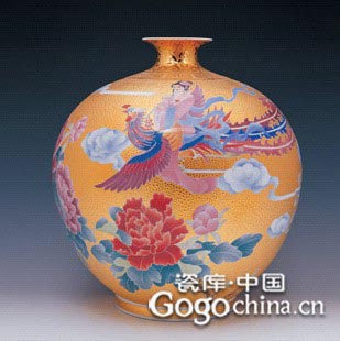 圖:國(guó)花牡丹鳳凰東方神韻描金高檔花瓶