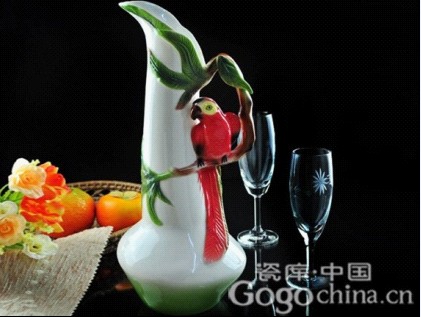 圖:春節(jié)禮品·鸚鵡琺瑯彩藝術花瓶