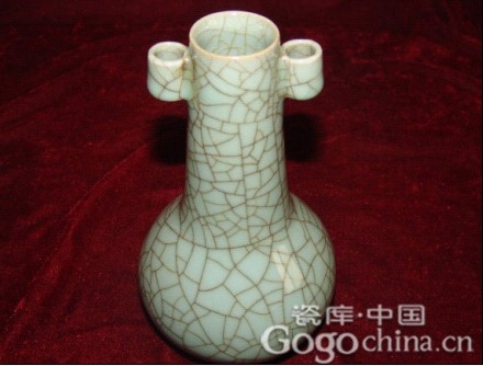 圖:龍泉官窯青瓷粉青開片貫耳藝術花瓶