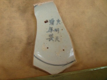 至于北京故宮博物院收藏的兩件青花小碗,外底書(shū)有“大明天順年制”青花料款,被認(rèn)為是萬(wàn)歷至天啟時(shí)的仿品。明代磁州窯瓷器中有書(shū)“正統(tǒng)拾壹年伍月壹日”款的,見(jiàn)于白地黑花罐上,以黑彩書(shū)于器肩。