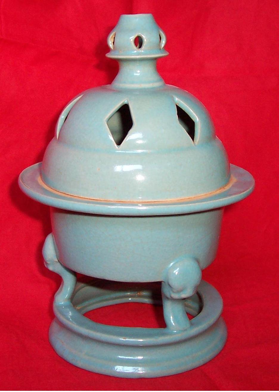 燒造方法:主要有兩種,一種是支釘支燒,一種是墊圈或墊餅墊燒。采用支釘支燒的器物通體滿釉,支釘細(xì)小如芝麻狀;支釘數(shù)以5個(gè)為多,橢圓形水仙盆則采用6個(gè)支釘。采用墊圈或墊餅墊燒的器物圈足足端無釉,少數(shù)器物有銘款,傳世僅見有兩種,其底刻“奉華”和“蔡”字款。