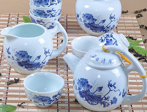 圖:德化功夫茶具--9頭青瓷荷花半圓壺套裝