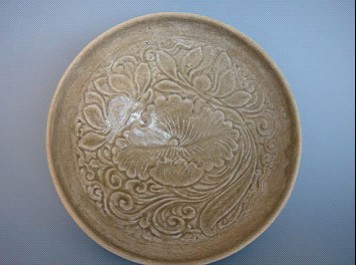 耀州窯:在今陜西銅川市,宋屬耀州,故名。始燒于唐代,北宋中期以后達(dá)鼎盛,終于元代。 燒制唐三彩、白瓷、青瓷、黑瓷和醬色釉瓷等品種,以青瓷最負(fù)盛名。其青瓷產(chǎn)品的特征和鑒定要領(lǐng)是:(1)胎色灰白,胎質(zhì)堅(jiān)硬,露胎處呈現(xiàn)醬黃色。(2)釉色青黃、深沉,釉層較厚,器物往往上部厚,下部薄,胎釉交接處呈姜黃色。此外,青釉釉面上有的出現(xiàn)小的露胎褐斑,為其它青瓷所不見(jiàn)。(3)器型豐富,盤(pán) 、碗、杯子、碟、瓶、壺、罐、爐、盒、香薰、注壺、注碗、盞、缽、燈、枕等均有,器物造型多變,有花瓣式、瓜棱式和多折式,外形美觀。其中力士爐頗具特色,爐身底座四周跪有力士。(4)唐末、五代青瓷采用劃花裝飾,紋飾題材多為水波與花草紋。(5)宋代裝飾技法主要是刻花、印花、劃花以及模印刻劃相間,以刻花、印花為主。北宋中期刻花發(fā)展成熟,刀法犀利,線條剛勁有力,刀痕有斜度,是宋代刻花技法中最優(yōu)秀者。北宋晚期的印花也很精美,布局嚴(yán)謹(jǐn),對(duì)稱勻衡。紋飾有纏枝蓮、把蓮、牡丹、纏枝菊、波浪、飛鶴、飛蛾、犀鶴、博古、海水游魚(yú)、蓮塘戲鴨和嬰戲圖案等,龍鳳紋則是宮廷瓷器專用題材。水波紋外一般刻劃以六角形邊線,水波中三魚(yú)多見(jiàn)。嬰戲圖案則以蕩秋千為主。宋代花紋裝飾特點(diǎn)是,早期于器面刻 劃簡(jiǎn)單的花瓣紋;中期則花紋滿布器面;到了晚期花紋線條大多纖巧。(6)金代產(chǎn)品瓷胎呈灰白色,青釉呈色偏黃。大量使用陶范印花,滿布器面的花紋逐漸減少,而在盤(pán)、碗內(nèi)壁,大量出現(xiàn)菊花、蓮花、水波、魚(yú)鴨紋等,構(gòu)圖簡(jiǎn)單,呈圓圈形。(7)元代產(chǎn)品器外一般施半釉,挖足淺,足較寬,似玉環(huán)底足,足內(nèi)心有乳 狀凸起。(8)晚唐、五代盤(pán)、碗一般采用支釘支燒,通體滿釉,足內(nèi)有3個(gè)支釘痕。宋代器物足端無(wú)釉,足內(nèi)有釉。金、元時(shí)期一般采用疊燒,盤(pán)、碗內(nèi)有疊燒痕,也有用一缽一器裝燒的,則僅足端無(wú)釉。