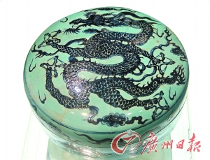 不過此次順德藏家拿出的“元青花大龍蒸盆”,其“釉上彩”的工藝非常特別,“就是大量采用非常名貴的材料蘇麻離青,先燒制,再上釉,再畫龍,再燒制。”潘繼生解釋道:“其中畫龍的手段最為特別,可以說與歐洲油畫的技法異曲同工,將染料大量利用,之后畫出浮雕的效果,燒制成功后,大龍是呈現(xiàn)立體狀的,用手摸上去能明顯感到浮雕效果。”