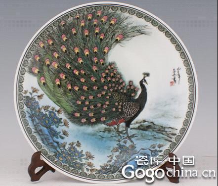 圖:釉下五彩大師手繪孔雀圖寒江凝翠陶瓷藝術掛盤
