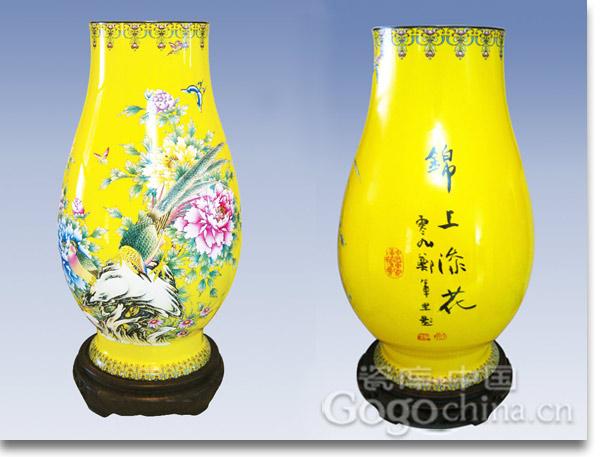 圖:高檔瓷器琺瑯彩國禮黃地錦上添花和瓶