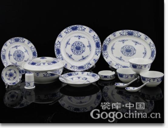 圖:吉祥相伴景德鎮(zhèn)青花釉中彩骨瓷56頭餐具碗盤