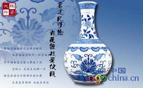 圖:手繪青花纏枝菊紋花瓶—陶瓷藝術(shù)大師袁述凡作品