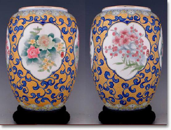 圖:四季花開(kāi)四面開(kāi)光毛瓷畫面高檔藝術(shù)花瓶