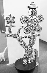 展會(huì)上的“中國(guó)陶瓷藝術(shù)館”非常有人氣,傳統(tǒng)的陶瓷現(xiàn)在也變得有點(diǎn)“潮”了。過(guò)去一直以經(jīng)營(yíng)景德鎮(zhèn)大師作品為主業(yè)的璟通藝坊,這次不推大師推學(xué)者了,當(dāng)代陶瓷領(lǐng)軍人物周?chē)?guó)禎教授《今天我生日》系列動(dòng)物造型陶瓷、中國(guó)美院教授劉正的瓷版人物畫(huà)、清華大學(xué)美院白明和江西省陶瓷研究所藝術(shù)室主任白磊的抽象瓷藝作品,讓人們感受到千年古陶瓷的藝術(shù)新風(fēng)尚。