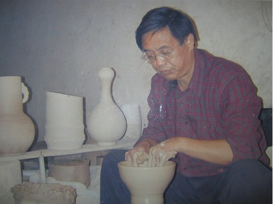 圖2:劉富安大師正在專注的地進行鈞瓷創(chuàng)作