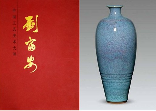 圖3:大紅袍畫冊《中國工藝美術大師劉富安》封面及在2011年納高拍出134萬的大紅袍鈞瓷·梅瓶