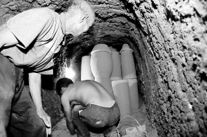 工人們正在裝窯。與現(xiàn)代陶瓷多用電窯燒制不同,這里繼承的是洪州窯傳統(tǒng)燒陶古法。此窯名叫龍窯,一次可以容納1000多個(gè)大小不一的瓶瓶罐罐,打窯口封閉之日起,需用干柴烈火燒上三天三夜。