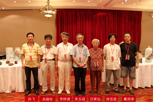 此次活動評委,從左到右依次為:孫飛(景德鎮(zhèn)陶瓷行業(yè)協(xié)會副會長)、吳錦華(中國工藝美術大師)、李梓源(中國陶瓷藝術大師)、朱玉成(中國工藝美術學會副理事長、專家組成員、上海文史館館員)、汪寅仙(中國工藝美術大師)、徐定昌(中國陶瓷藝術大師)、戴雨享(中國美院陶藝系教授、碩士生導師)。