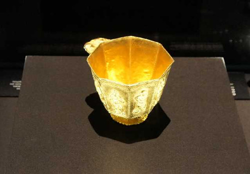 金碗,杯面上的舞伎長(zhǎng)發(fā)飛揚(yáng),有胡人之貌。這是迄今中國(guó)境外發(fā)現(xiàn)的最為重要的唐代金器。