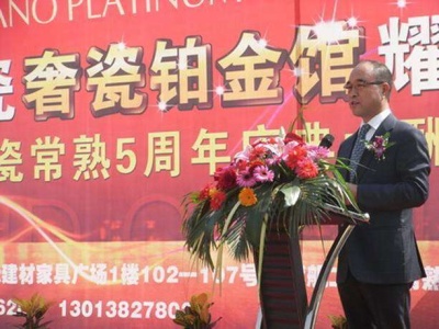 佛山歐神諾陶瓷股份有限公司總裁黃建起先生為常熟鉑金館開業(yè)致辭