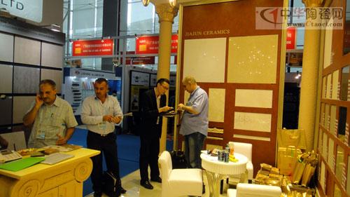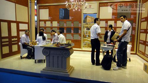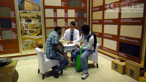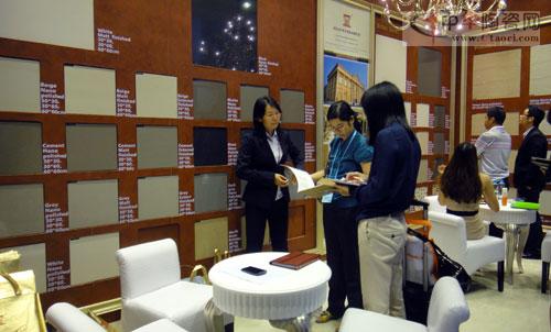 嘉俊陶瓷攜最新款的微粉、玉晶石、羅馬洞石等產(chǎn)品亮相第110屆廣交會,受到中外客商的青睞。在短短幾天時間里,共有來自南美、中東以及歐洲等地的600多位客商前來咨詢洽談,對嘉俊的高品質(zhì)產(chǎn)品表現(xiàn)出濃厚興趣,現(xiàn)場簽約及意向性協(xié)議金額超過上屆。圖為國外采購商在嘉俊展位洽談業(yè)務(wù)。